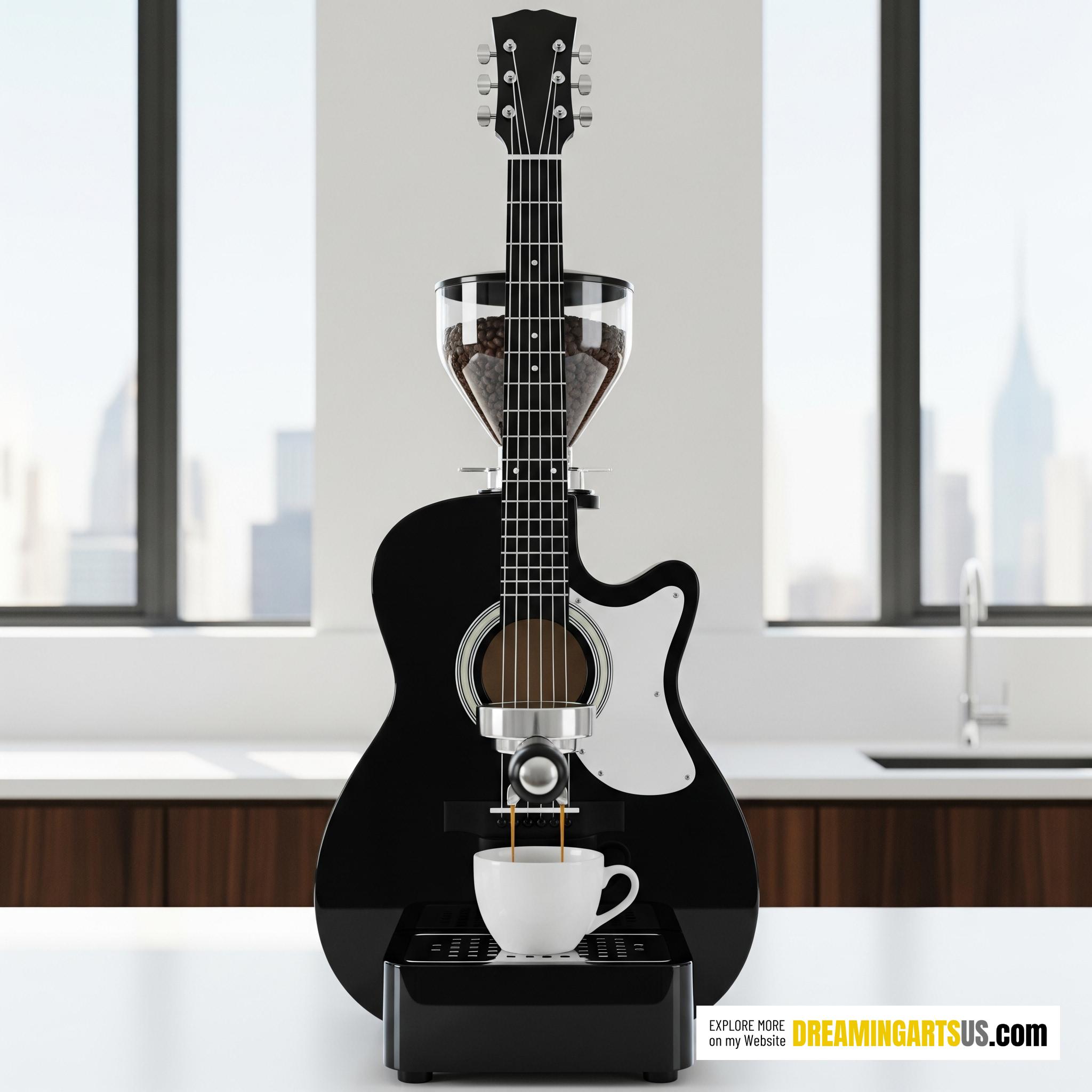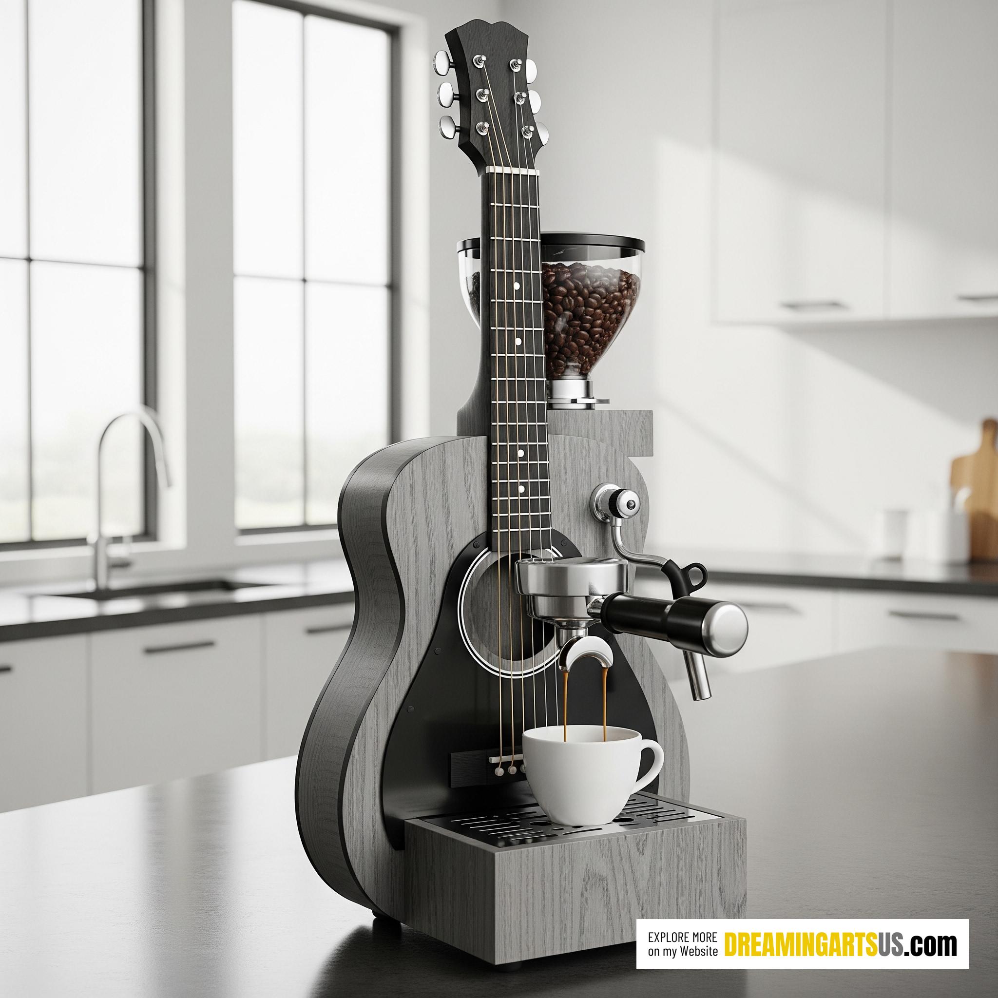 Traditional coffee machines often lack personality. This guitar-inspired design turns your morning brew into a creative ritual that inspires and excites. Itâs a reflection of your lifestyle and passion, a visual anthem for your kitchen.