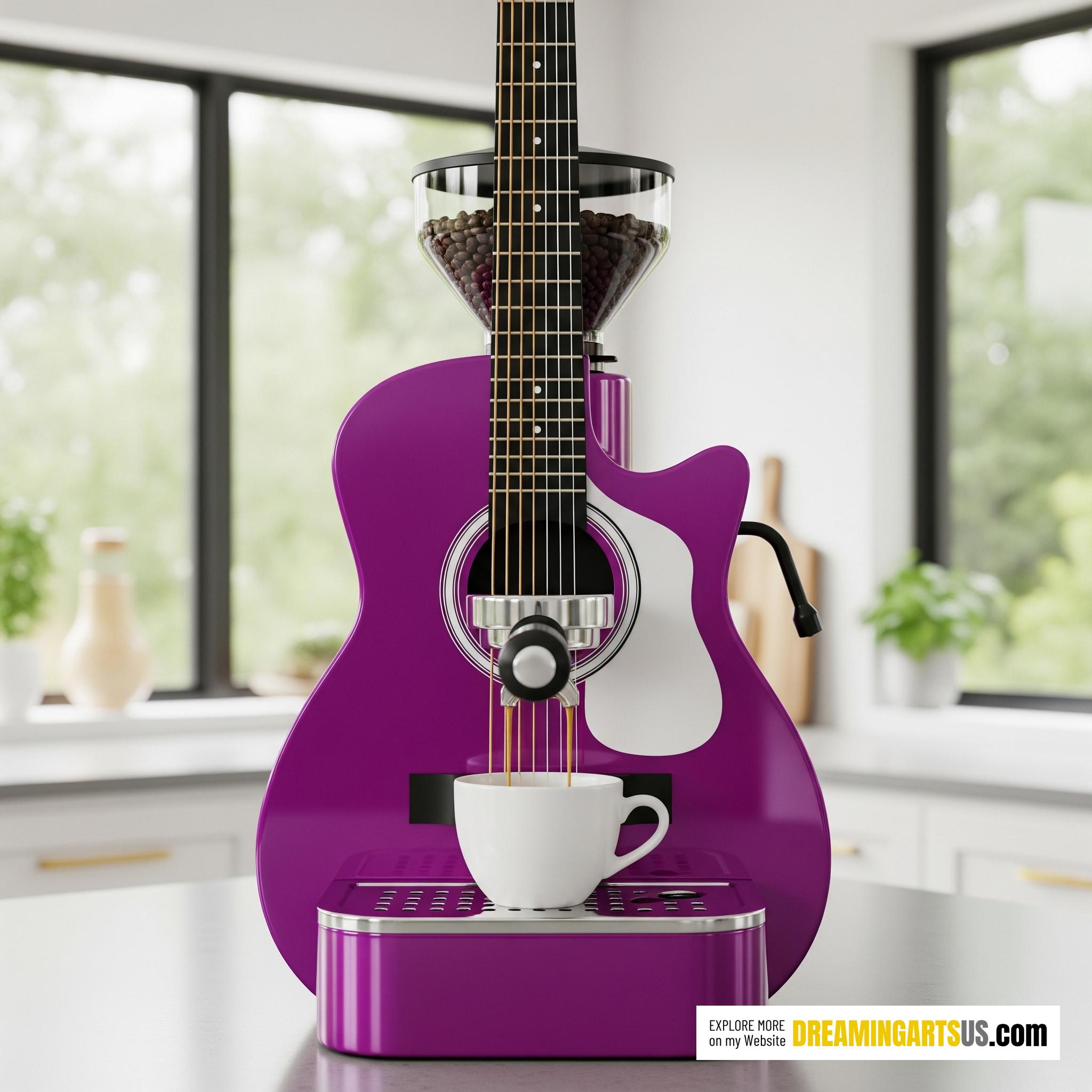 Combining your favorite tunes with the Guitar-shaped Coffee Machine can transform your kitchen into a personal concert hall.